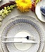 The application of gold in pieces, defining various textures, was used in the porcelain of Sèvres in the late 18th century. Known as “pointillé d’or” or “sablé d’or” (or even “partridge eye”), these motifs mixed golden dots with shades of blue fire, forming small circles. The Constellation d’Or service recreates these geometric patterns and modernizes them, keeping the same decorative technique. On the backdrop of white heavens embossed with gold, the blue-gold constellations’ shines forth.