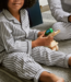 The sleepwear is made from the finest quality yarn-dyed cotton and blended with just enough inherently flame retardant fiber to allow it to pass strict CPSC flame retardant laws without using harmful chemicals. The fabric is brushed for added softness, making the sleepwear feel absolutely luxurious, getting cozier after each wash.