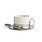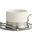 Serve in style with this charming cup, saucer and spoon set. Italian ceramic and pewter, Hand made in Italy.