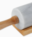 Natural white marble with polished hardwood handles and stand, an added attraction to the counter or easily stores away. Read more..